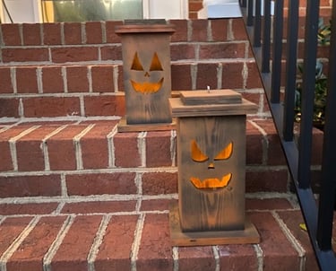 Wooden lanterns designed as seasonal decor pieces. These are small batch items made for a specific time of year and may not always be available.